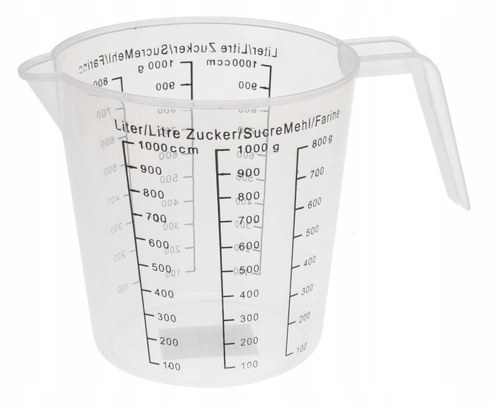 DZBANEK Z MIARKĄ PRZEŹROCZYSTY PLASTIKOWY LITRÓW CUKTU I MĄKI 1l 1000ml