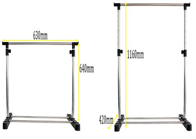 Wieszak stojący metalowy. Świetnie nadaje się do domu, na targowisko lub do sklepu. Nowoczesny wygląd pozwoli na "świeże" wyeksponowanie odzieży. Stojak można szybko złożyć i rozłożyć w razie potrzeby.