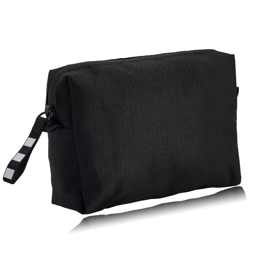 Ta kosmetyczka wykonana z poliestru z recyklingu pomaga uporządkować drobiazgi. Równie praktyczna do postawienia na biurku lub zawieszenia na haczyku w łazience – i odpowiedniej wielkości, aby zabrać ze sobą w podróż.