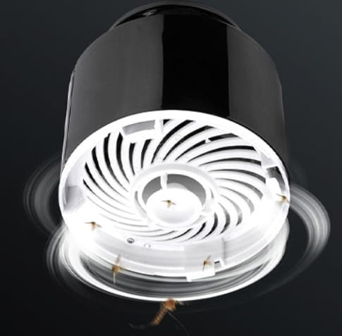 ▶️ Spód lampy pełni rolę pojemnika, który zbiera owady wlatujące do pułapki - w celu demontażu wystarczy przekręcić dolną część urządzenia.