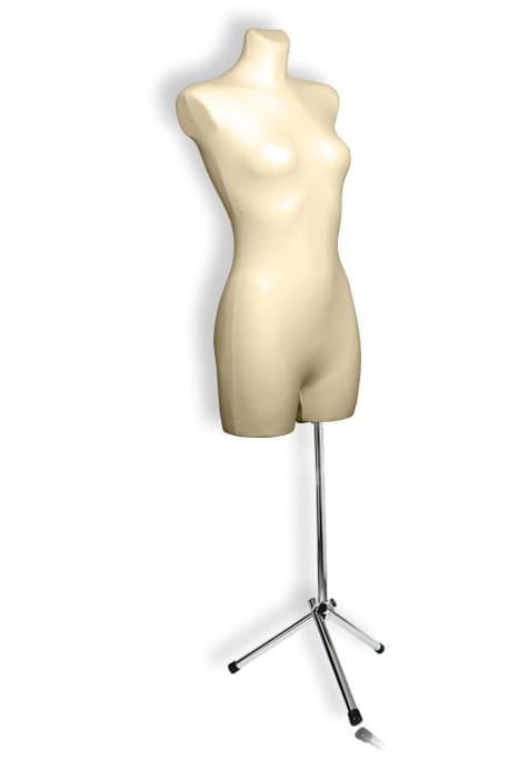 Manekin krawiecki wykonany ze spienionego polistyrenu ("styropian" = lekki i wytrzymały) w poszyciu z kolorowej i elastycznej lycry ( łatwa w praniu). Manekin na stabilnej nodze metalowej (chromowanej) - regulowanej.