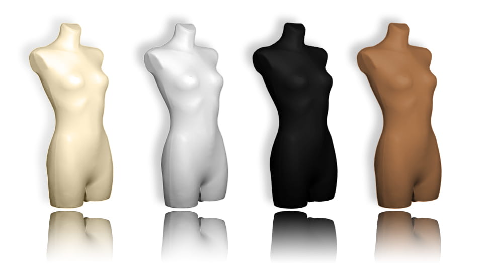 Manekin pozwala wyeksponować każdą grupę towarową przy efektywnym wykorzystaniu wizerunku (np. swetry, sukienki, garsonki, bluzy, kurtki, spodnie, spódniczki, spodenki, itp.)