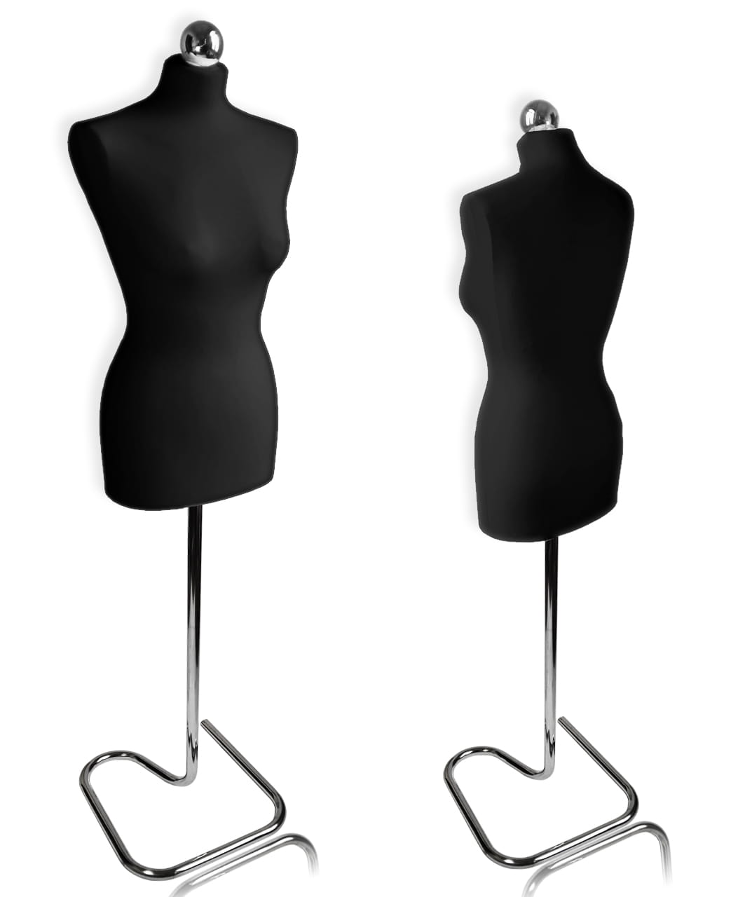 Manekin "elegancki" damski na metalowej nodze (ślimak) + kula - czarny