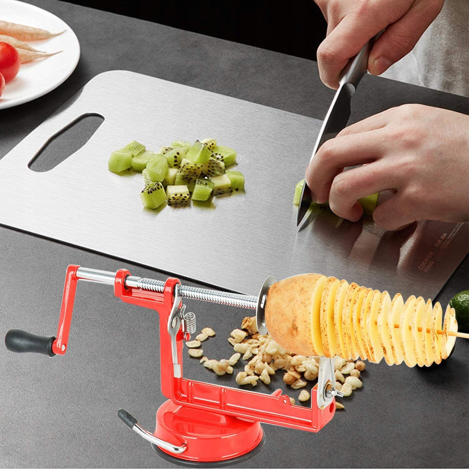 - Istnieje wiele rodzajów plastrów ziemniaków i innych owoców i warzyw, takich jak jabłka, marchewki, ogórki i tak dalej.