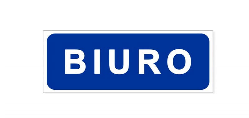 - Oznakowanie na drzwi BIURO dostępne w wersji:
