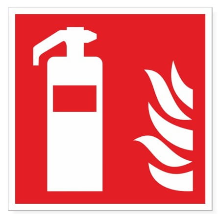 Nadruk czerwone tło i biały znak GAŚNICY z płomieniami (znak PPOŻ - ochrony przeciwpożarowej) - oznakowanie miejsca, w którym znajduje się gaśnica (sprzęt gaśniczy zobacz również oznakowanie HYDRANT WEWNĘTRZNY).