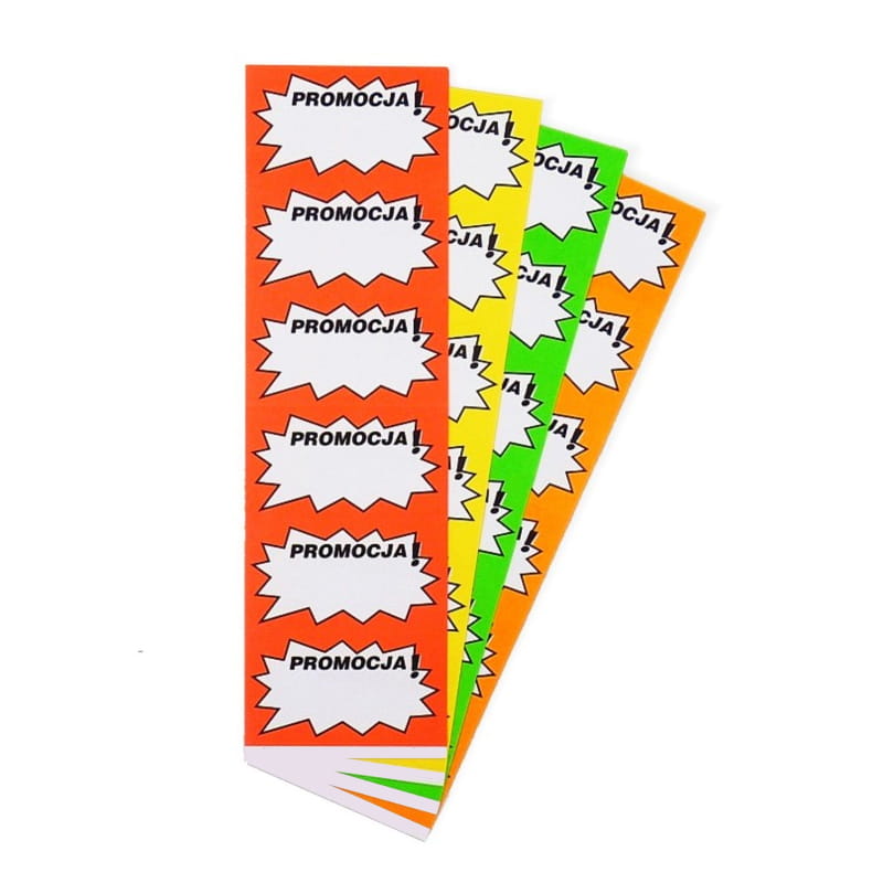Etykiety cenowe wykonane z wysokiej jakości papieru samoprzylepnego.