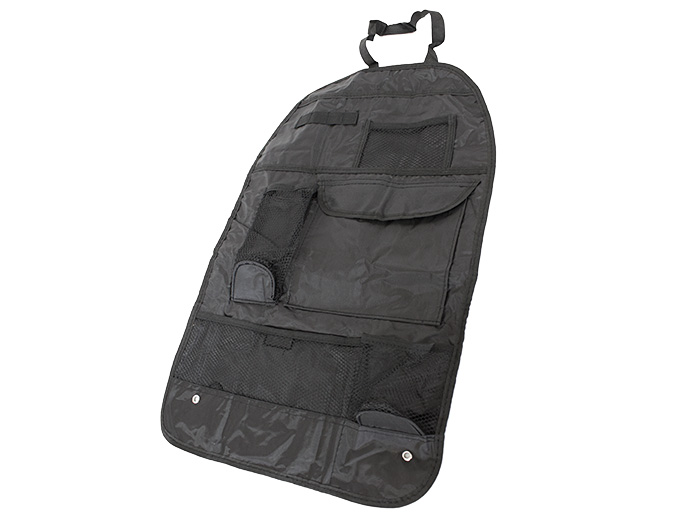 Organizer-Ochraniacz na fotel przeznaczony do ochrony tylnej części przednich siedzeń przed zabrudzeniem, a także zamoczeniem śniegiem, wodą, błotem, piaskiem, solą, itp. Można w nim trzymać różne, podręczne przedmioty.