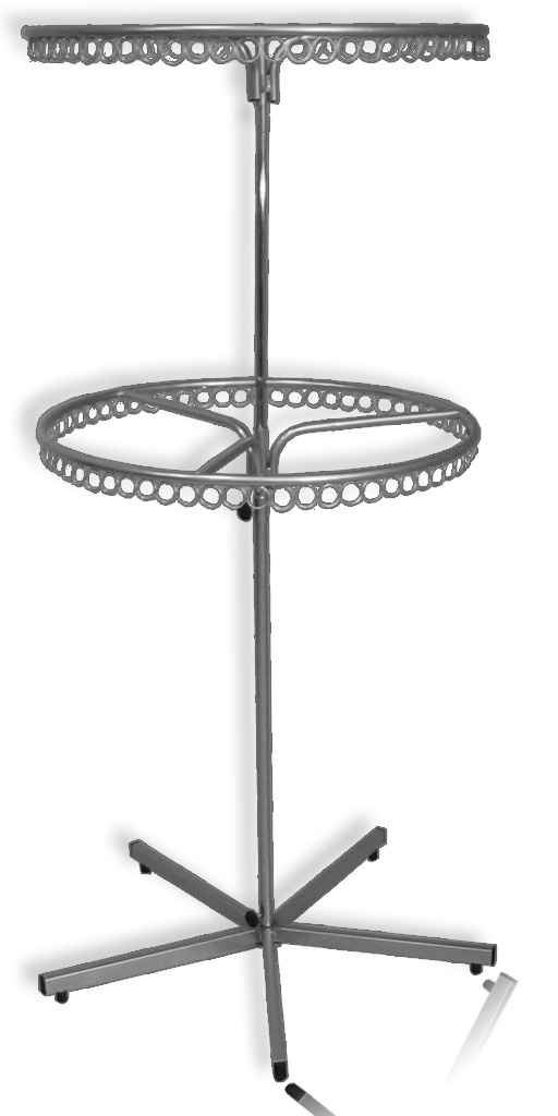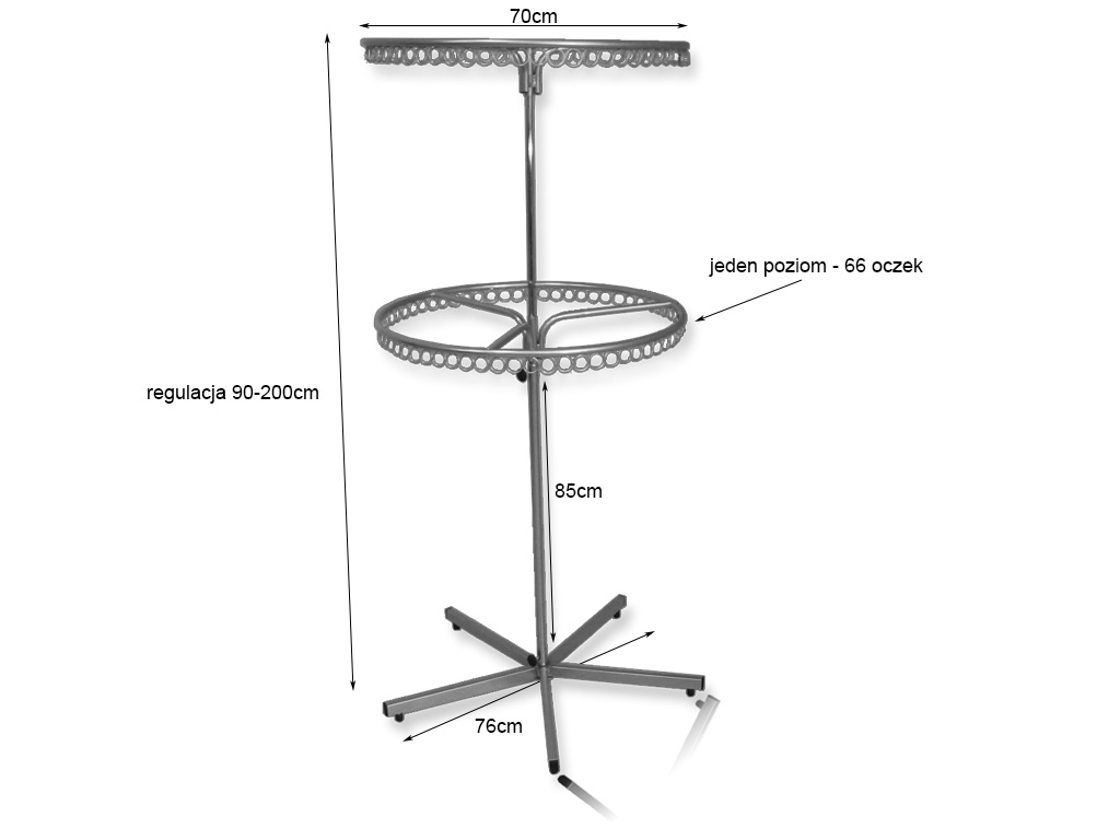 Przedmiotem aukcji jest: Stojak wykonany z rurki , który w łatwy sposób może być złożony lub rozłożony na targowisku. Stojak posiada 66 bolców na jednym kole, dzięki którym łatwo oddzielić wieszak od wieszaka. Bardzo estetyczna i lekka, doskonale nadaje się do ekspozycji towarów przecenionych i wielu innych. Pozwala wyeksponować każdą grupę towarową przy efektywnym wykorzystaniu przestrzeni.