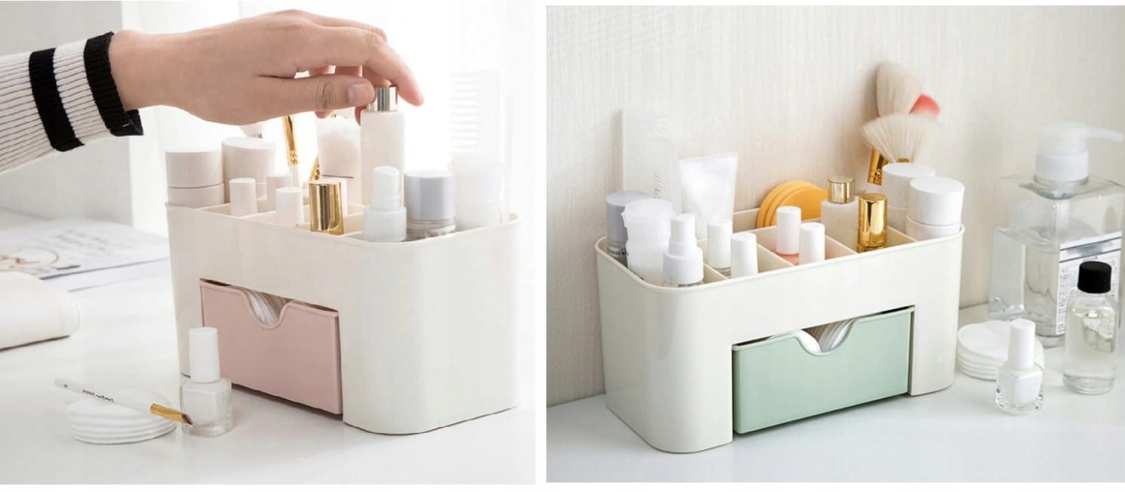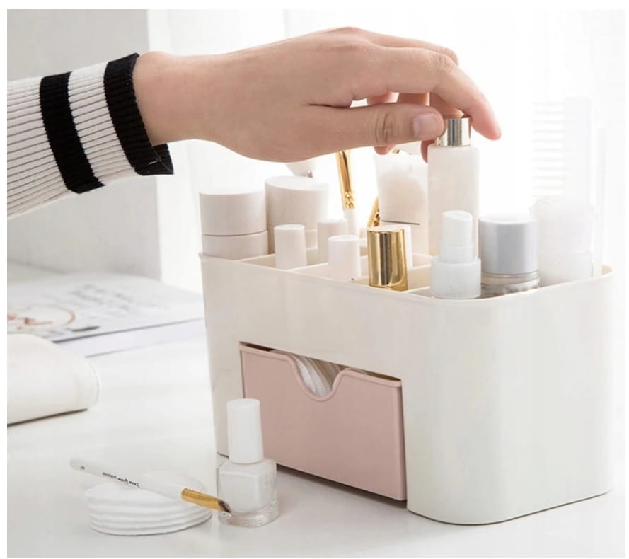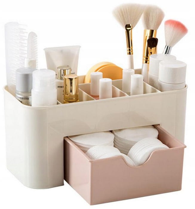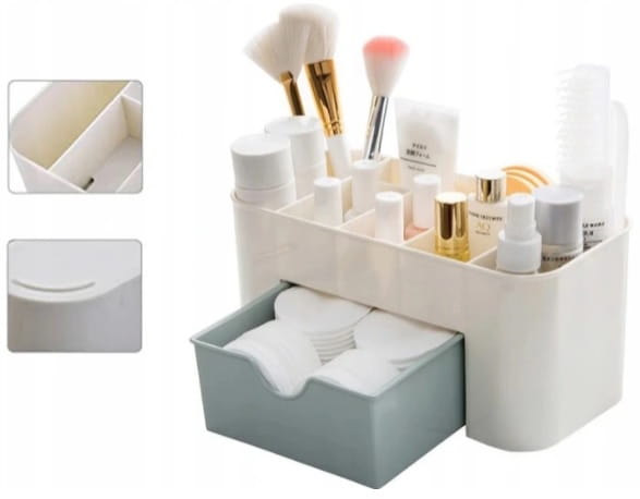 - Orgaizer jest wyposażony w szufladkę, która może służyć do przechowywania, np. wacików kosmetycznych