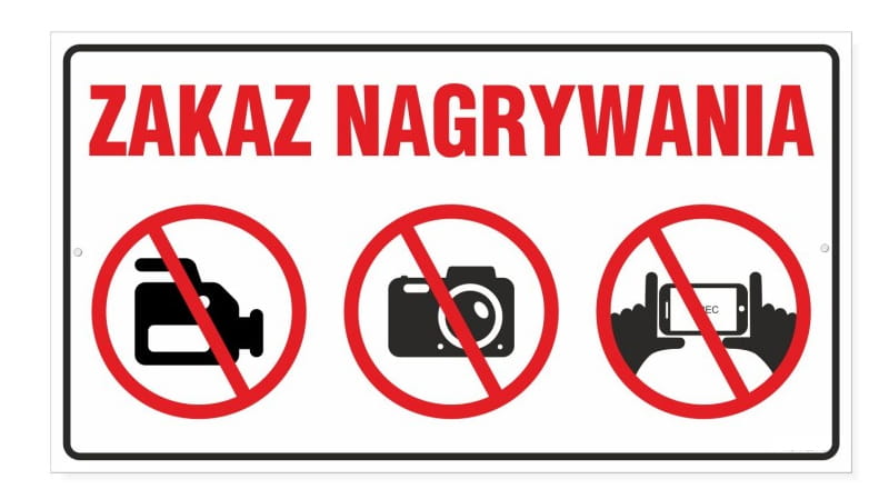 TABLICZKA INFORMACYJNA - ZAKAZ NAGRYWANIA |BIAŁA| |PVC| (30x16.5cm)