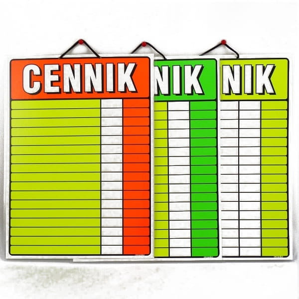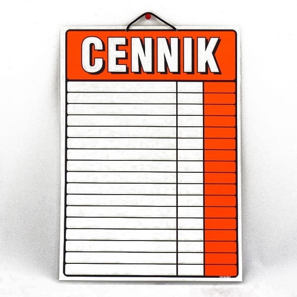 WYWIESZKA INFORMACYJNA - CENNIK A4 |LAMINOWANA| |ŻÓŁTY|