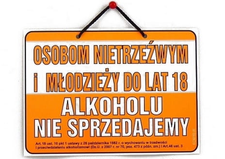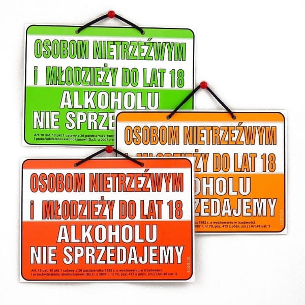 - Rodzaj: OSOBOM NIETRZEŹWYM I MŁODZIEŻY DO 18LAT ALKOHOLU NIE SPRZEDAJEMY