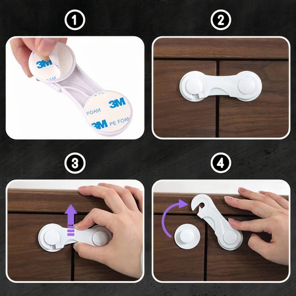 Zabezpieczenie szafek sprawdzi się również w przypadku zwierząt, które lubią otwierać meble podczas nieobecności właściciela i „robić porządki” w ubraniach. Klips nie otworzy się bez naciśnięcia w prawidłowy sposób, dzięki czemu zawartość szafki/szuflady będzie bezpieczna.